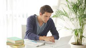 Business man sitting at table with laptop has many ideas planning future isolated gray wall background. Assuming a round table with 12 chairs, the 1st person, man or woman, has a choice of 12 chairs and picks 1. Use them in commercial designs under lifetime, perpetual & worldwide rights. Man sitting at table and using laptop at home + [ An open pizza box, a plate with two pizza slices, and a bottle of lactase tablets are on the table.